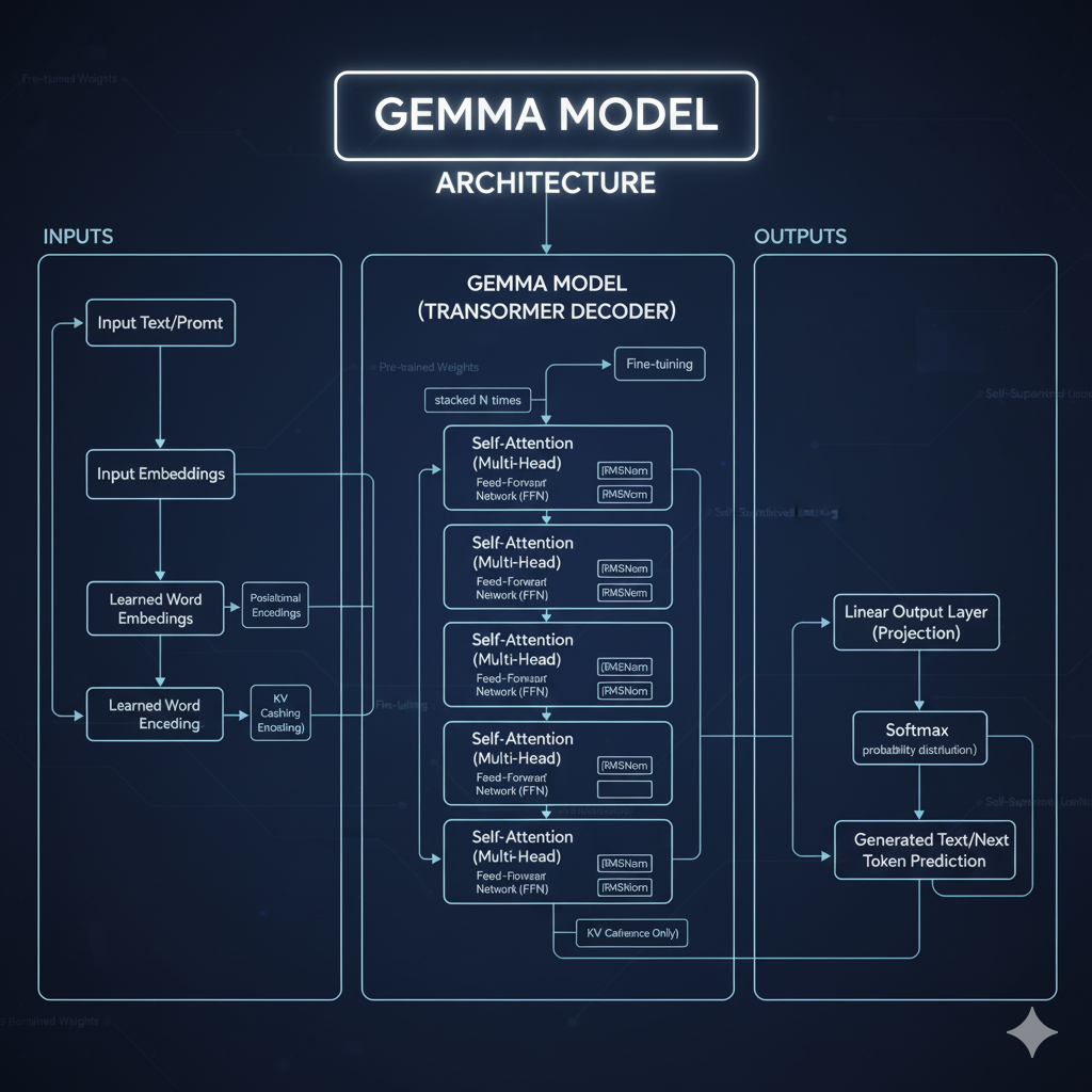 Gemma AI is a family of lightweight generative AI models created by Google DeepMind. Released in early 2024, these models are designed to handle a variety of tasks like writing text, summarizing information, answering questions, reasoning, and even working with images. They are built to be both powerful and efficient, making them accessible to developers without super-powerful computers.